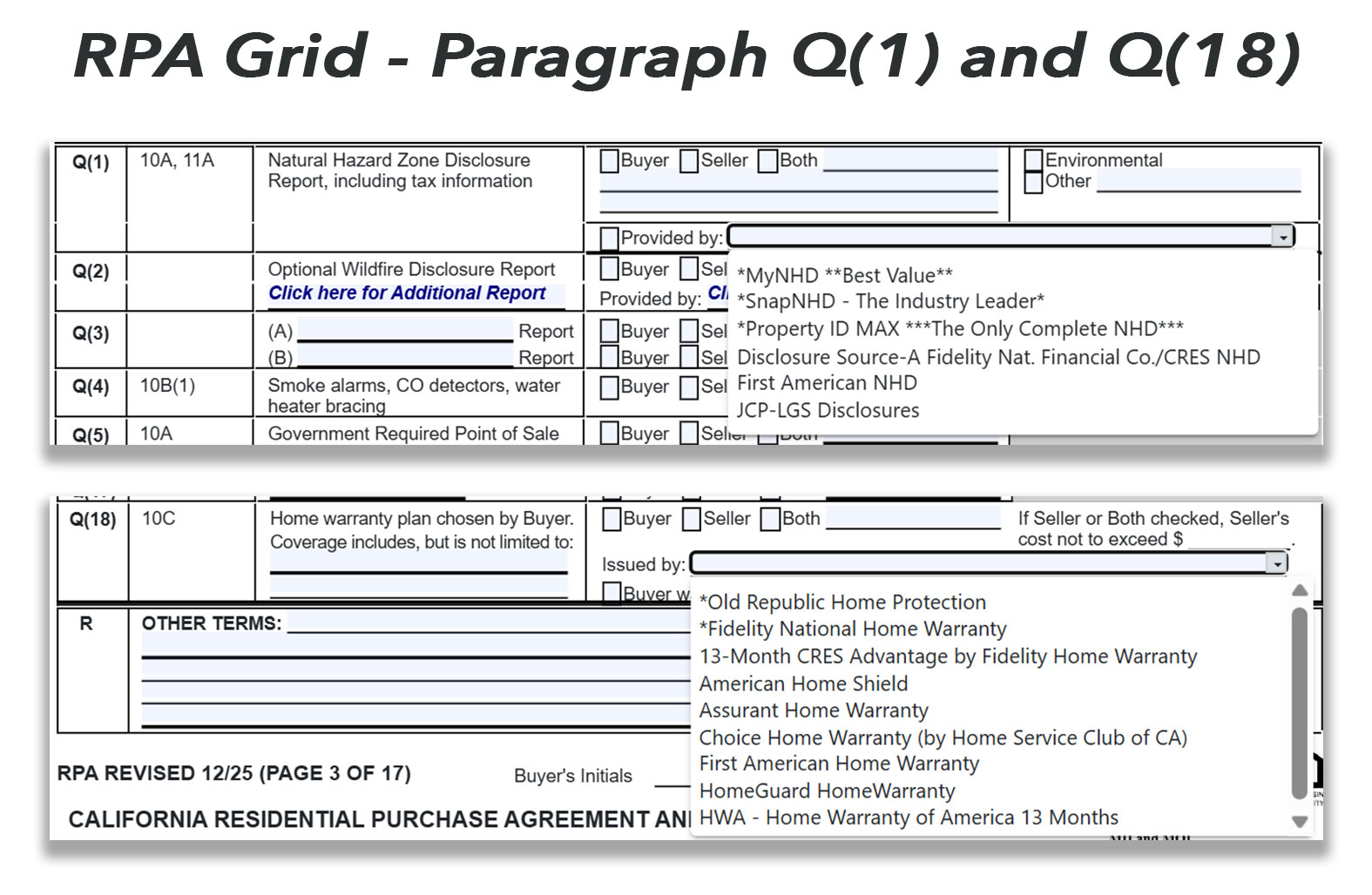Service Providers are pre-loaded and fully integrated into zipForm for use in your Purchase Agreements:
